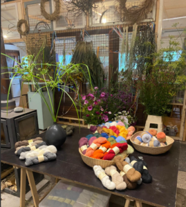 De producten van Jacqueline zijn voornamelijk natuurlijke garens waarvan een deel door haar zelf geverfd zijn